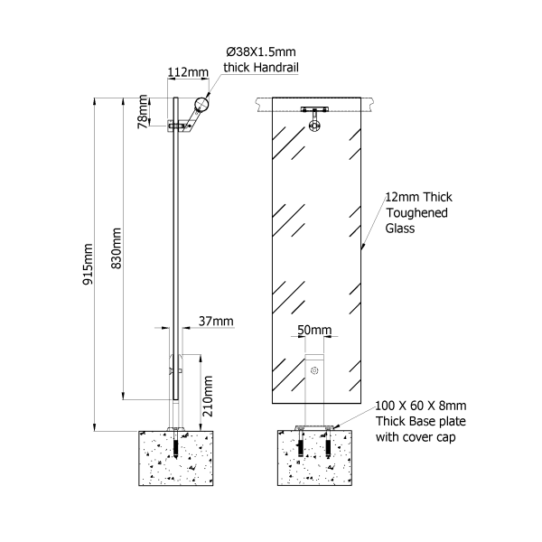 Top Mounted Flat (Mini) Bracket System With Glass