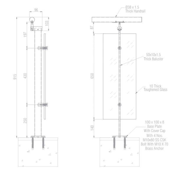 All the connections are made using the machined joinery parts which however, also gives a decorative form. This baluster comes with multiple option of co-rails in numbers required as per aesthetics required.